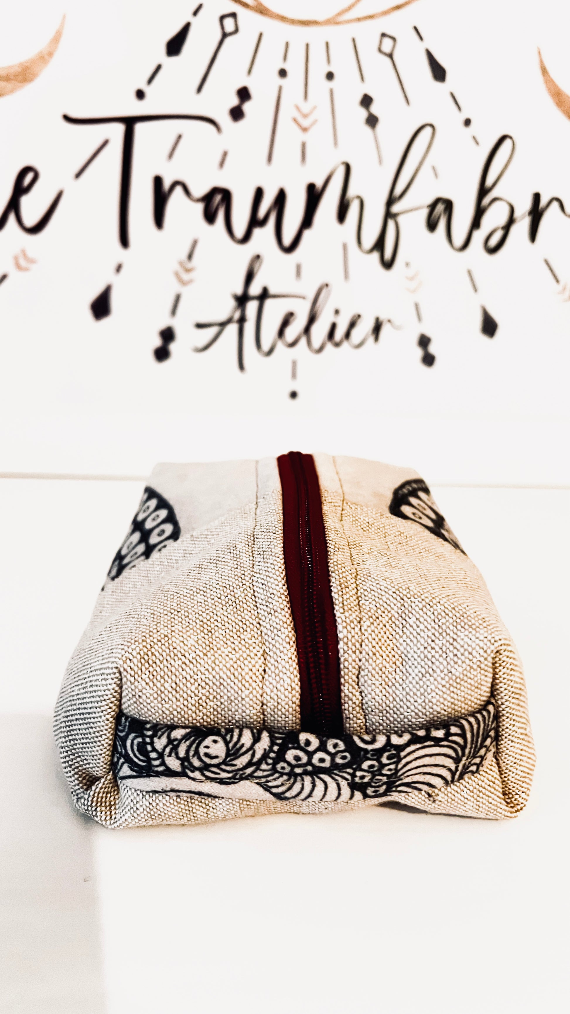 Entdecke die Einzigartigkeit dieser handgefertigten Beauty Bag! Der Außenstoff dieser Tasche ist ein Meisterwerk, das von Hand gezeichnet wurde, in der Zentangle Art. Während das Innenfutter aus wiederverwertetem Material gefertigt ist, das von einem großen Tuch aus Bali stammt.