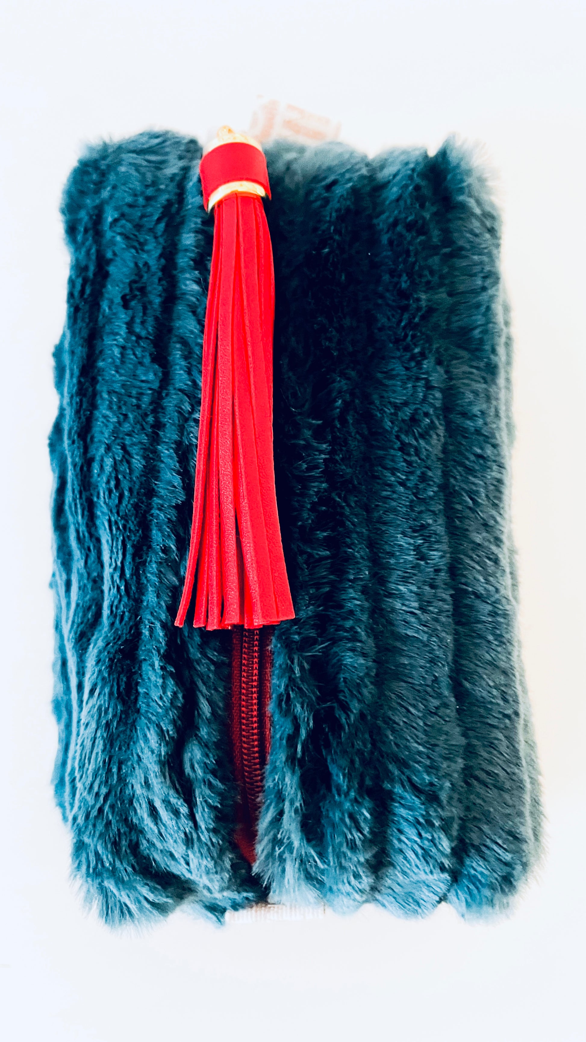 Diese einzigartige handgefertigte Beauty Bag aus feinem flauschigen Stoff ist ideal für die Aufbewahrung deiner Kosmetikprodukte